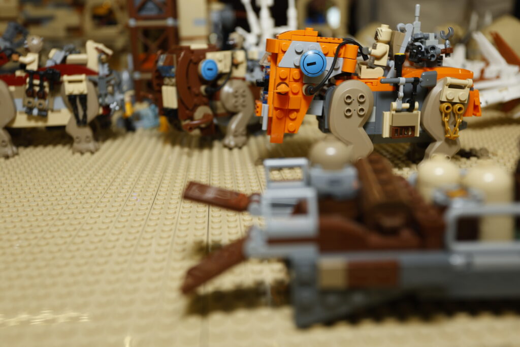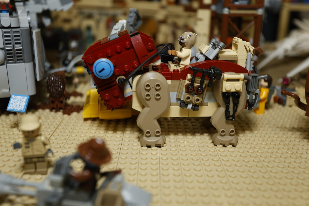 Le cavalier Tusken, souvent drapé dans des étoffes battues par le vent, guide sa monture d’une simple pression de la main. Il sait que le Luggabeast, malgré son apparence mécanique, reste une créature sensible, méfiante envers les inconnus mais d’une loyauté indéfectible lorsqu’on prend soin d’elle.