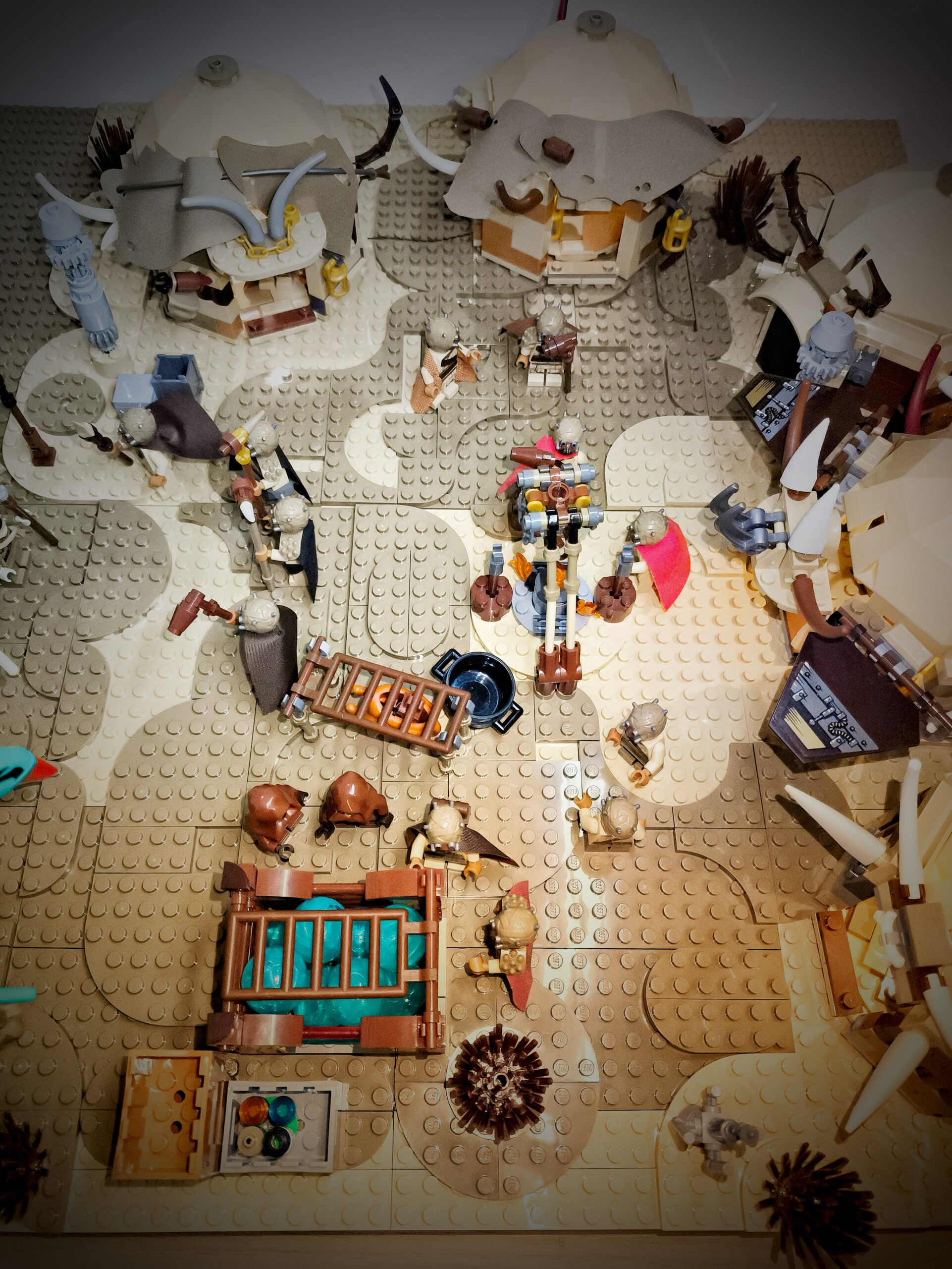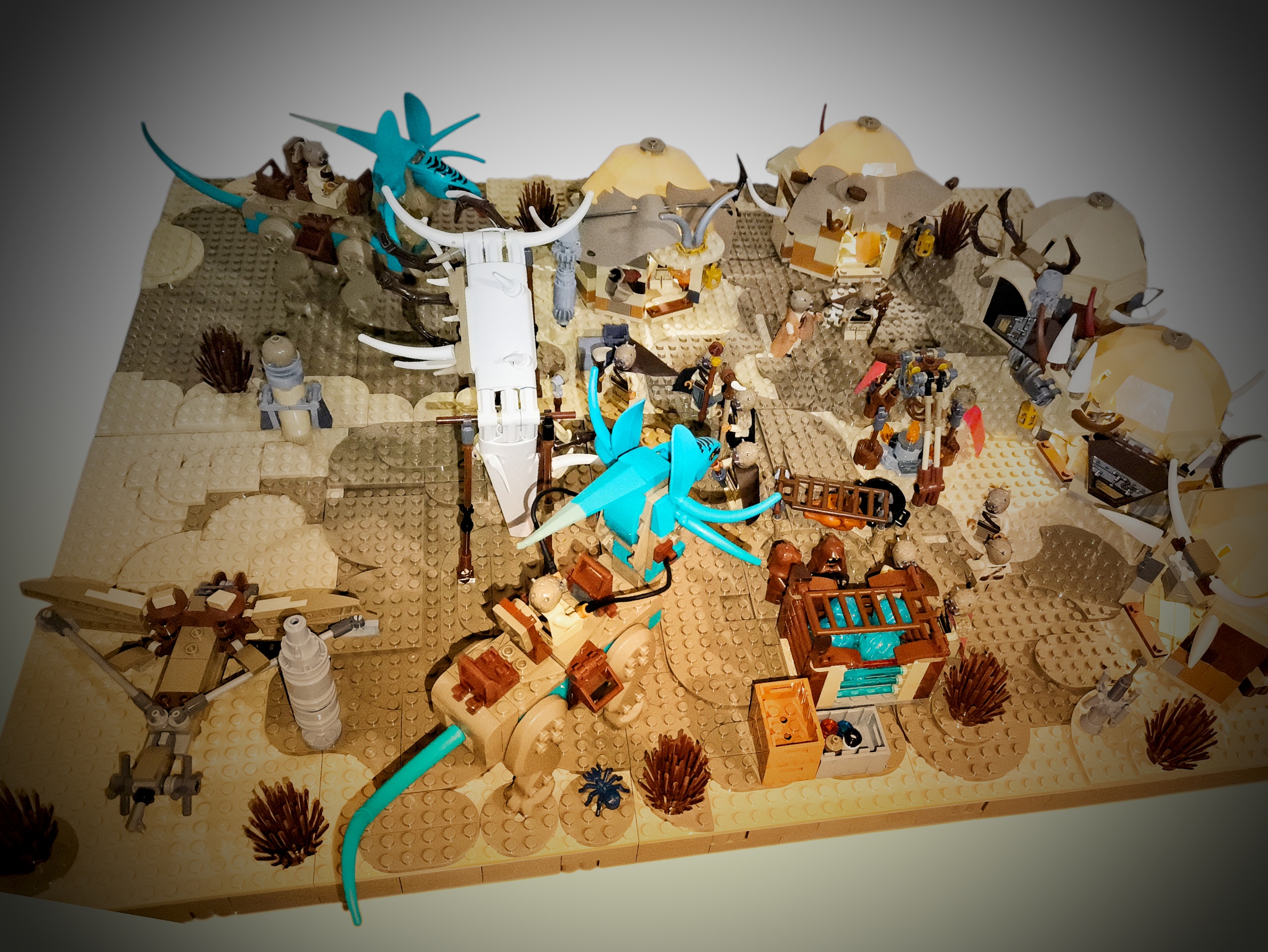 Le village, construit autour des ossements blanchis d’une gigantesque créature — peut-être un Dragon de Sirrath — est un lieu sacré. Chaque structure, chaque outil, chaque foyer porte une marque de leur histoire : celle d’un peuple déraciné qui a choisi de ne pas disparaître.
