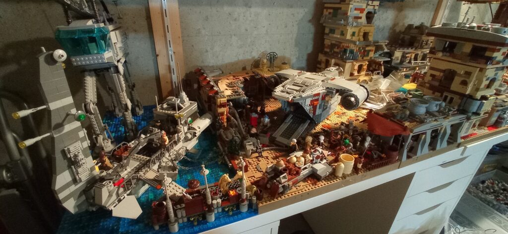 Fondée en 2022, la ville d’Eibon n’a cessé de grandir et d’évoluer au fil des ans, jusqu’à atteindre sa version actuelle en 2025. Construite avec près de 130 000 pièces LEGO, elle s’étend sur une superficie de 4,8 mètres par 1 mètre. Cette œuvre, fruit d’années de passion et d’améliorations continues, représente aujourd’hui l’un des plus riches témoignages de l’imaginaire autour de la planète Savareen, dans la Bordure Extérieure.